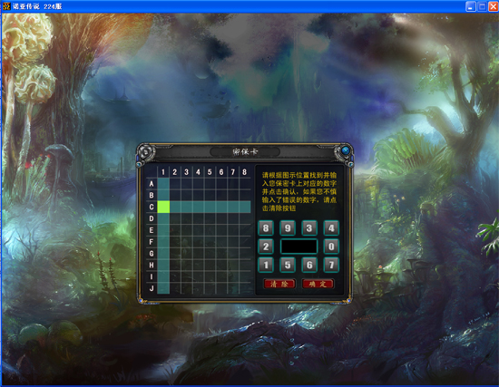 绑定密保卡后,账号登陆游戏则需要输入对应的密保卡坐标数字,输入正确后,方可登陆成功。