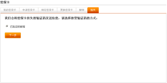 步骤一:如果您丢失了密保卡,可以进入账号平台http://www.syyx.com/index.aspx,点击"安全保护"页面中的"挂失"选项。点击"下一步"后,系统将发送一个验证码到您申请密保卡时填写的验证邮箱中。