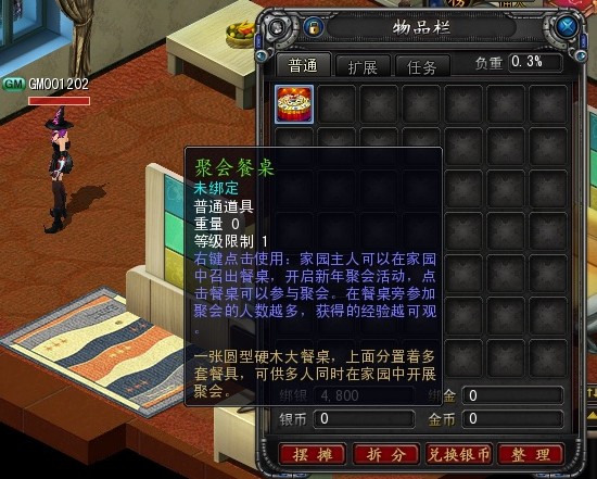 日常副本(轮回,十面,虫族,人族)中会有一定几率获得聚会餐桌,如果没有可以跟别的玩家交易