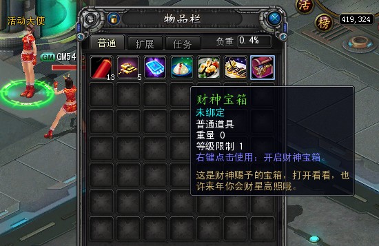 步骤七、收集了美酒、果盘、年糕,可以去祭财神了,能够得到经验、绑银、财神宝箱。打开财神宝箱可以获得家具包、爆竹、绑银等,更有机会获得新年时装—人龙传说。