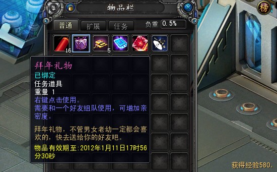 步骤四、拜年礼物需要两名好友组队才能使用,使用后双方可以获得亲密度及持续一个小时的幸运值BUFF。