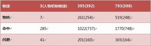 从表中的数据可以看出,满级392敏带来的收益为物防254,命中737,闪避160,而且算上装备增加的属性,以敏捷793(增加790)来算,收益为物防512、命中1485、闪避324