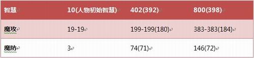 从表中数据可以看到满级392点智慧带来的收益是魔攻180,魔防71;同样算上装备加的智慧,按智慧800(增加790)来算,收益为魔攻364,魔防143