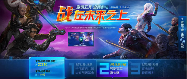 战,在未来之上!2012题材人气新游《诺亚传说》5月首届跨服大战5天倒计时!大战步步逼近,激情节节高涨,《诺亚传说》所有玩家已经沸腾!你呢?一起走进《诺亚传说》……