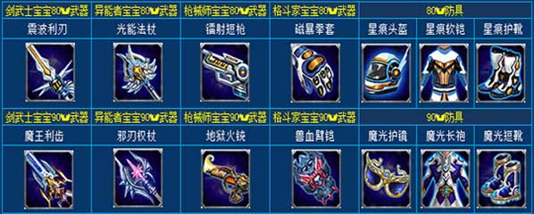 宝宝进化达80级后,将开放新的宝宝装备!这种全新装备将由装备评分决定其品质,通过一点一滴地培养使武器发生质的变化!