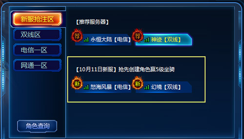 活动规则:活动期间,在新服注册账号并建立角色名,并于10月11日当天进驻到新服体验游戏