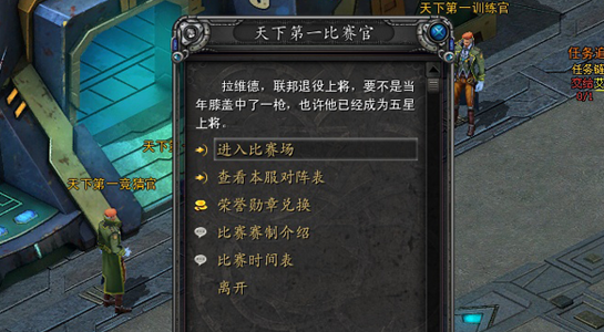 步骤一:本服选拔赛为周六,周日两天;持续时间是每天的下午15:55到17:20,15:30分选拔赛开启,拥有参赛资格的战队成员,可以直接通过风暴城天下第一NPC(191.332)进入比赛场地。