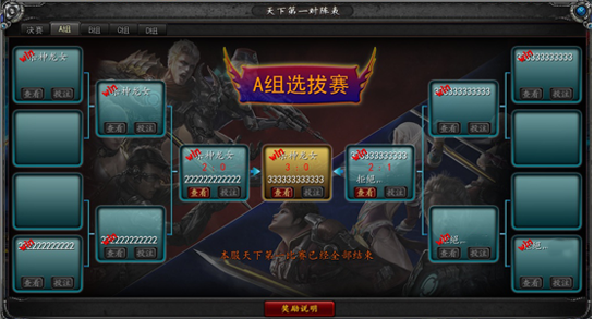 步骤四:最后一轮比赛会进行冠军争夺战,以及3-4名争夺战,最终获得前四名的战队获得参加天下第一的跨服赛资格。当参赛队伍不足时,决赛轮次可能被提前。